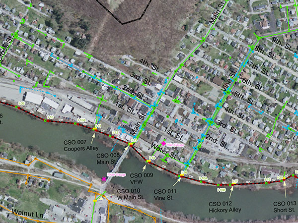 LSSE was retained after repeated attempts by prior engineers failed to provide an LTCP compliance program that was acceptable to PADEP.  LSSE first assisted the Borough in negotiating an acceptable Consent Order including a reduction in assessed penalties.  LSSE followed with a work plan for CSO Policy/NPDES Compliance including documentation and implementation of the nine minimum controls (NMC), system inventory and characterization (SIC), mapping, system hydraulic characterization (SHC) and development of an LTCP.  This plan was accepted by the Borough and approved by DEP without exception.  The system includes an interceptor along the Youghiogheny River with thirteen (13) CSOs, pumping facilities, and a WWTP.